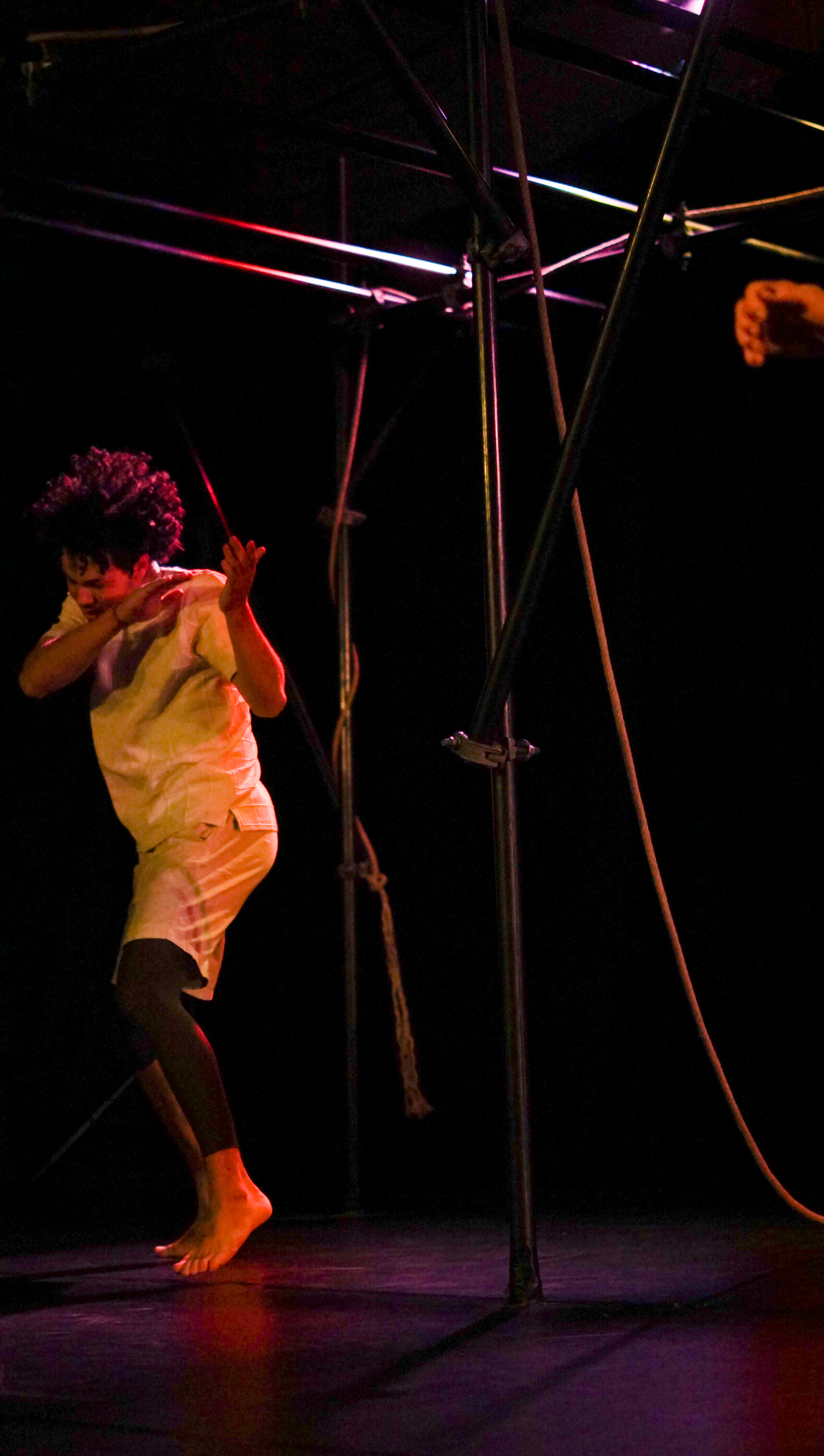 Wir alle befinden und bewegen uns in Netzen. Familiäre und berufliche Netzwerke, gesellschaftliche Strukturen, Normen und Konventionen so wie Freundeskreise und routinierte Tagesabläufe. Doch Netze können versagen. Was geschieht mit Menschen, die durchs Netz fallen? Was passiert in diesem Moment des Versagens, des Verlusts? Und was kommt danach, nach dem Fallen, nach dem Chaos? durchs netz erforscht und verhandelt diese Fragen. Körperlich. Choreografisch. Performativ. Es wurden Interviews mit betroffenen Menschen geführt. Ihren Erzählungen gelauscht und mit dem Körper übersetzt.